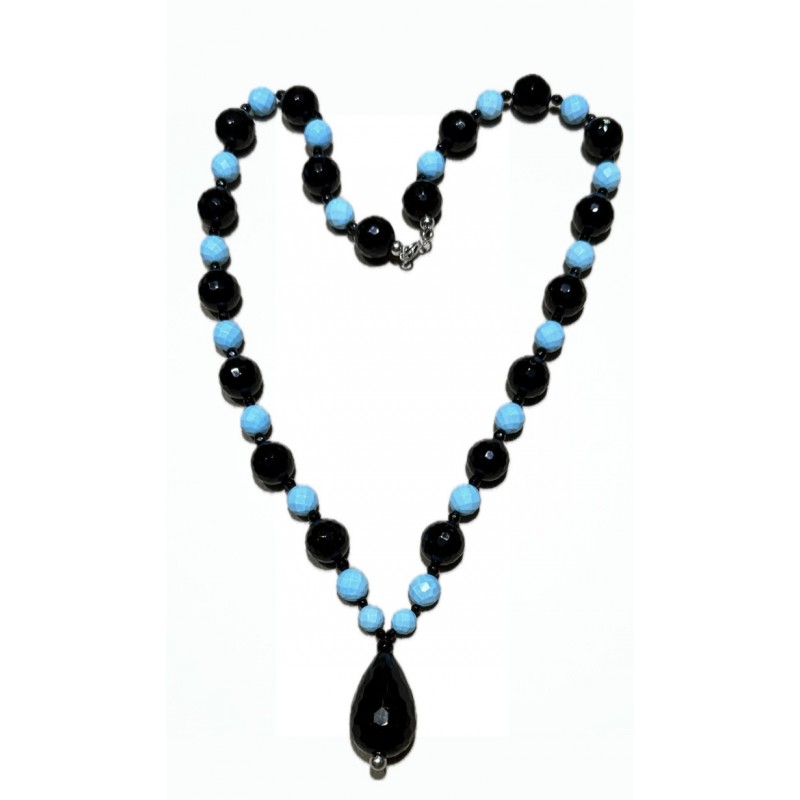Obsidian paste and turquoise necklace
