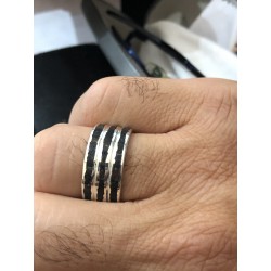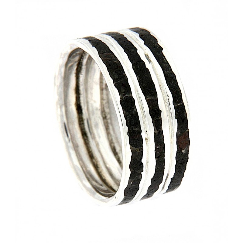 La fede è interamente realizzata a mano, il profilo tra la lava e il metallo è irregolare, per questo motivo l'anello acquistato non è uguale alla foto pubblicata, ogni qual volta viene realizzata la fusione il metallo avvolge la lava in modo diverso.